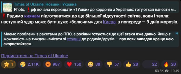 Українців закликають підготуватись до можливого погіршення основних побутових умов. У мережі попереджають, що в найближчому майбутньому столиця може зіткнутися з ще тривалішими відключеннями світла, водопостачання та опалення.