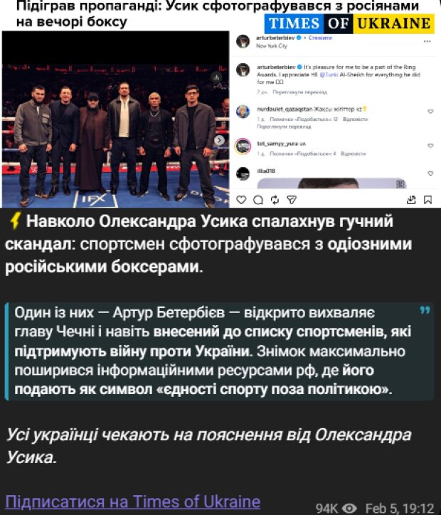 Олександр Усик опинився у центрі великого та гучного скандалу після того, як його сфотографували з російськими боксерами.