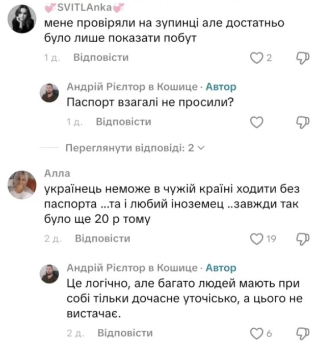 В обговоренні під відео він уточнив, що раніше зазвичай було достатньо подати тимчасовий документ про надання притулку. Однак зараз влада все частіше вимагає дійсний паспорт для підтвердження особистості. Інші користувачі згадали про подібні перевірки у Польщі та інших країнах ЄС.