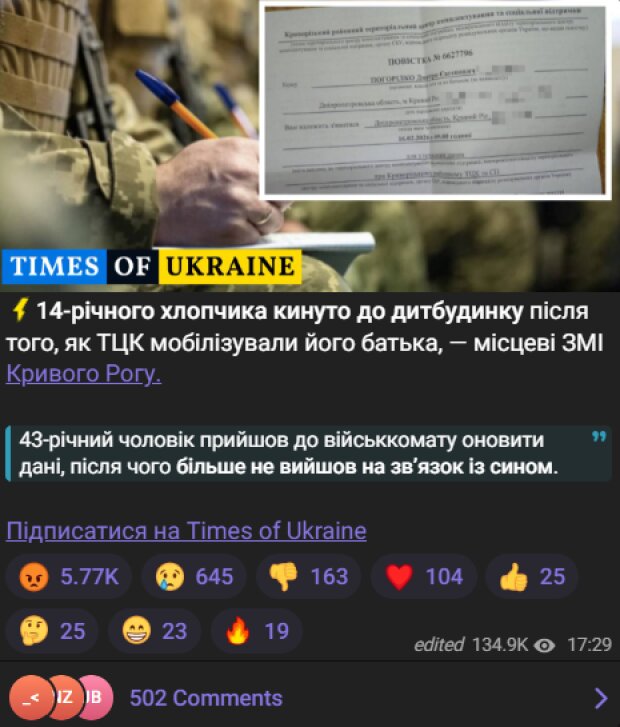 У Кривому Розі 14-річного хлопчика помістили до дитбудинку після мобілізації його батька, повідомляють місцеві ЗМІ.