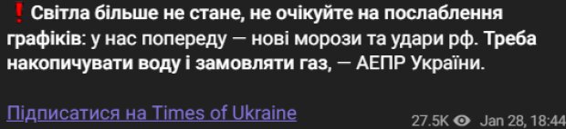 Тем временем, украинцев также предупредили, что не следует ожидать смягчения графиков света, поскольку ожидаются заморозки и новые атаки со стороны России. Жителям рекомендуется запастись водой и спланировать альтернативные варианты отопления, включая газоснабжение.